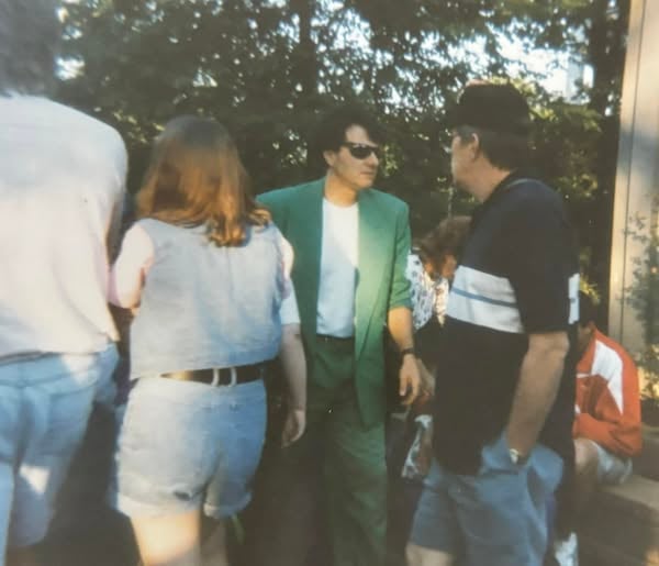Mary Alice is leafing through old photos for reasons we’ll get to in due time, but we came across this one from 1997 of a man who we dubbed “the jerk” who was walking around Sea World with sunglasses and green suit when she visited my hometown for the first time.